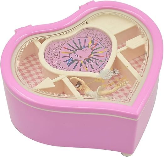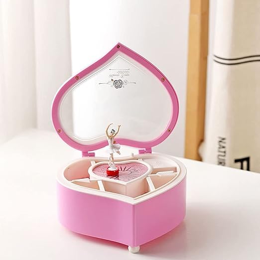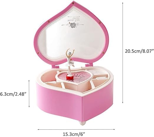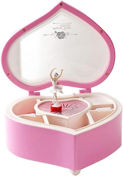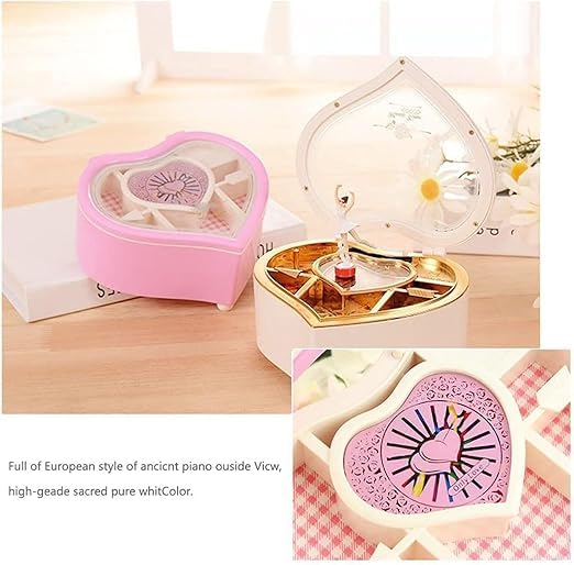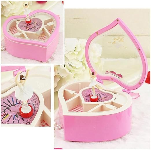 Generic - صندوق موسيقى راقصة باليرينا على شكل قلب مجوهرات موسيقي للبنات والاطفال