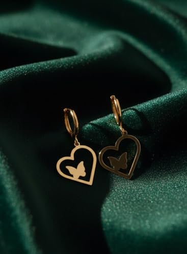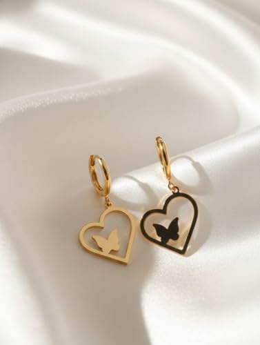 Generic - حلق من الفولاذ المقاوم للصدأ على شكل قلب للنساء - ذهبي