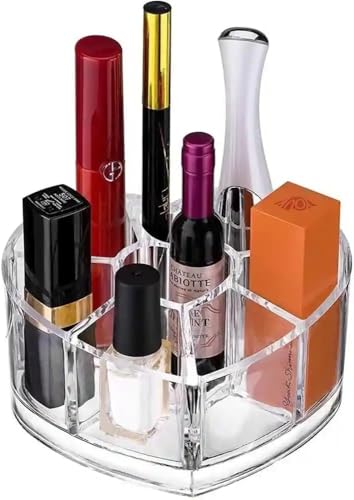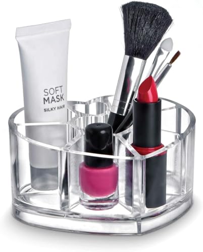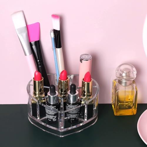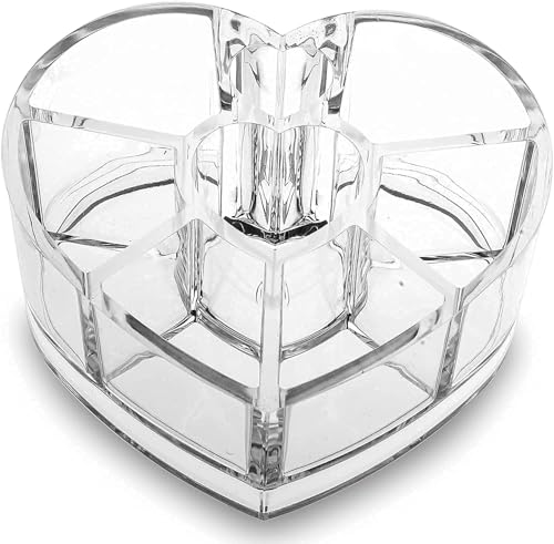 Generic - منظم مكياج أكريليك شفاف بتصميم قلب – صندوق تخزين أنيق متعدد الأقسام للمجوهرات ومستحضرات التجميل، حامل فرش وأحمر الشفاه وطلاء الأظافر، ديكور عصري لطاولة الزينة (2)