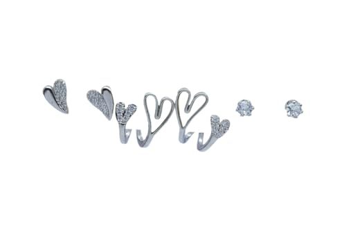 Generic - طقم اقراط بلاتينيوم بتصميم قلب للنساء، 6 قطع، فضي - حلقان 25