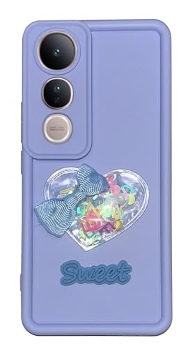 Generic - جراب موبايل لامع بتصميم قلب لموبايل فيفو V50 لايت، غطاء ممتص للصدمات من السيليكون الناعم والبولي يوريثين الحراري مع حماية للكاميرا، تصميم مضاد للصدمات (لافندر)