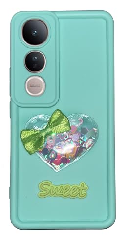 Generic - جراب موبايل لامع بتصميم قلب لموبايل فيفو V50 لايت، غطاء ممتص للصدمات من السيليكون الناعم والبولي يوريثين الحراري مع حماية للكاميرا، تصميم مضاد للصدمات (تركواز)