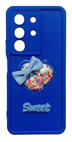 Generic - جراب حماية بتصميم قلب لامع لموبايل فيفو Y29 بشبكة الجيل الرابع 4G، ممتص للصدمات من السيليكون الناعم والبولي يوريثين المقاوم للحرارة، حماية الكاميرا، غطاء مضاد للصدمات (أزرق)