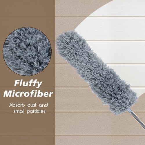Heart Home - منفضة غبار من قطعتين من هارت هوم | منفضة لتنظيف المنزل | منفضة مروحة السقف | عصا تنظيف شبكة العنكبوت | فرشاة تنظيف المروحة مع قضيب طويل | فرشاة غبار من المايكروفايبر للمنزل | رمادي
