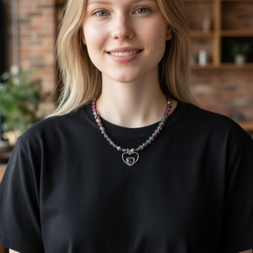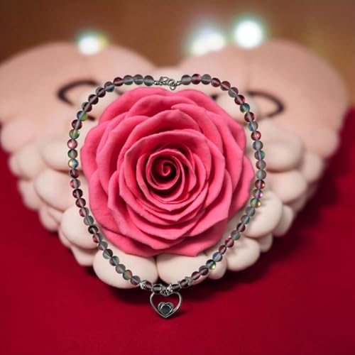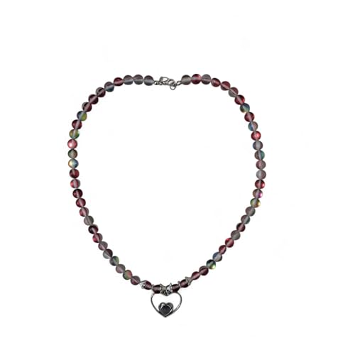 Generic - قلادة خرز زجاجية بدلاية على شكل قلب، 45 سم، ارجواني قزحي مع تعليقة فضية اللون، مجوهرات عصرية