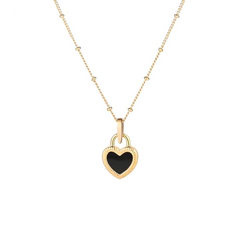 Generic - عقد بقلادة على شكل قلب - سلسلة انيقة من الستانلس ستيل مع تعليقة قلب رقيقة، لمسة نهائية مزدوجة اللونين باللونين الابيض والاسود، مثالية للاناقة اليومية.