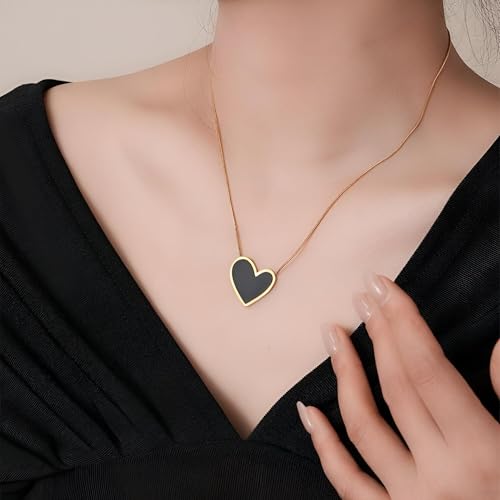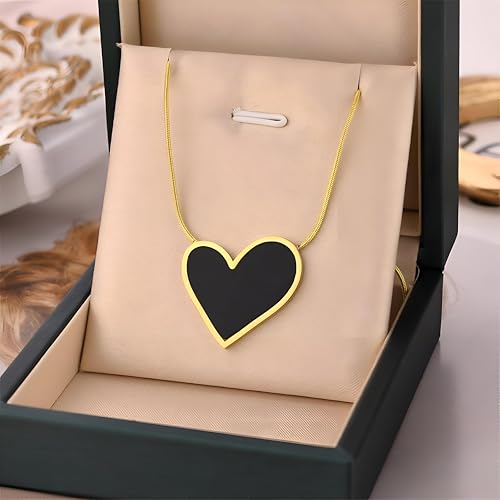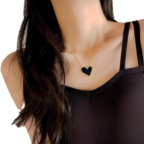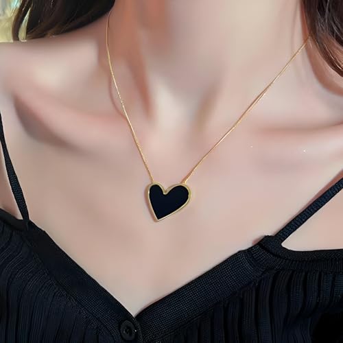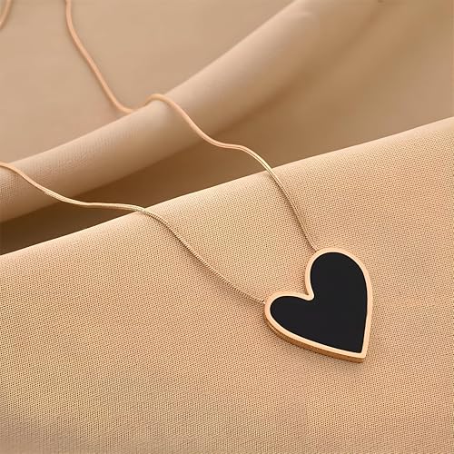 Generic - قلادة على شكل قلب - قلادة نسائية مذهلة على شكل قلب مصنوعة من صدفة عالية الجودة بتصميم اسود كلاسيكي، مثالية لإضافة الأناقة إلى أي خزانة ملابس عصرية وارتداء يومي أنيق.