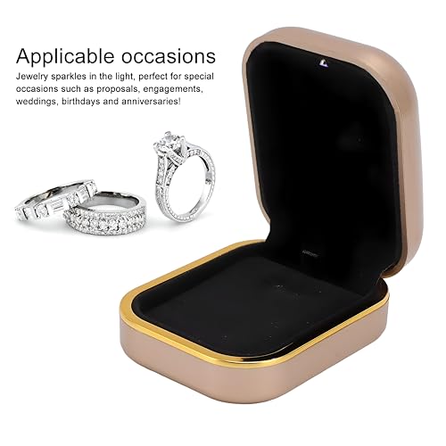 Generic - صندوق خواتم على شكل قلب - صندوق قطيفة مصنوع بشكل جميل بإضاءة ليد مصمم لخواتم الخطوبة، مع جزء خارجي ذهبي وتوهج خفيف لإضفاء لمسة مميزة على اللحظات الخاصة