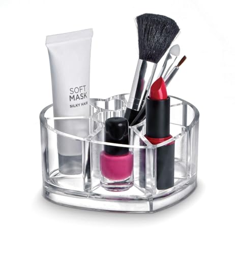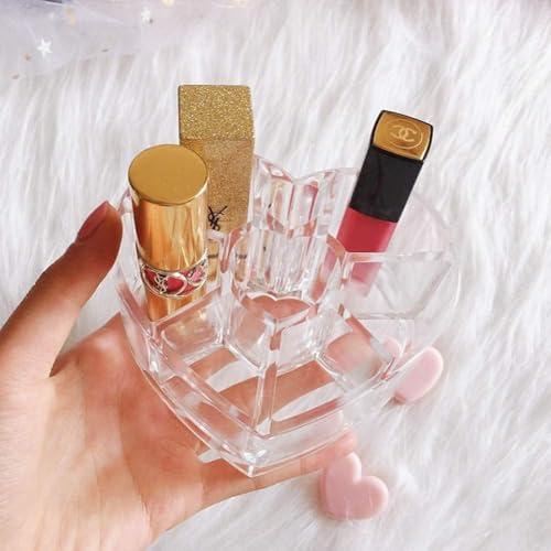 Generic - منظم مكياج أكريليك شفاف على شكل قلب – صندوق تخزين متعدد الأقسام لمستحضرات التجميل والمجوهرات، حامل فرش وأحمر شفاه وطلاء أظافر، تصميم أنيق وعصري