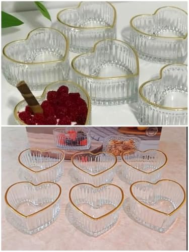 Generic - طقم أطباق عميقة تقديم للحلى على شكل قلب (6 قطع) - مزينة بحواف ذهبية، متعددة الاستخدامات ومقاومة للحرارة والبرودة، مثالية للحلويات والمقبلات والمناسبات والمطبخ المنزلي (مجموعتين (12 قطعة))