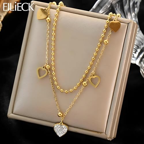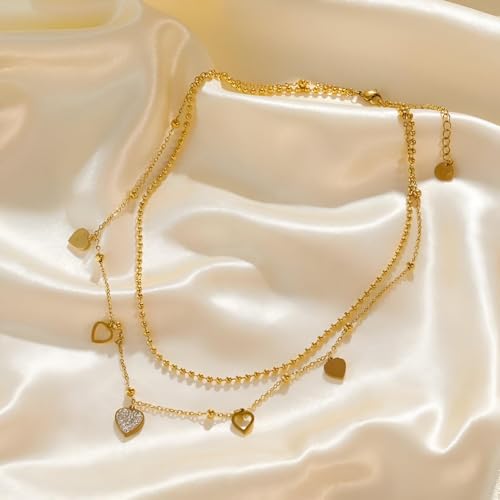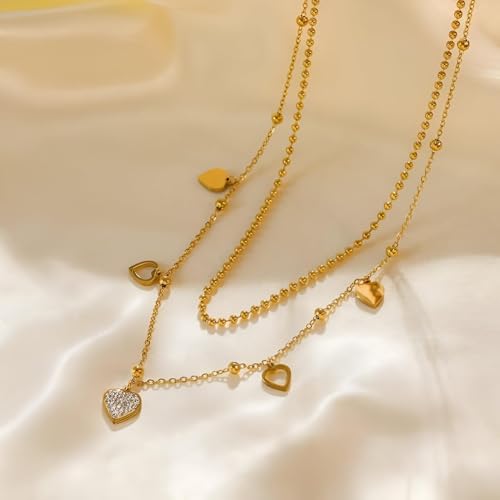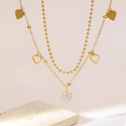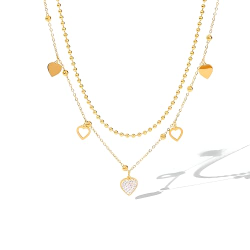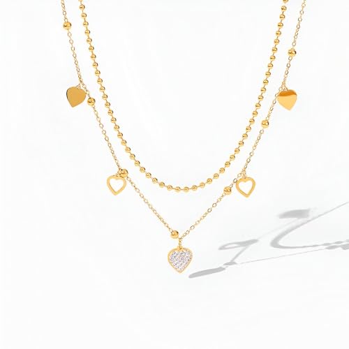 Generic - مجوهرات على شكل قلب - سلسلة من الستانلس ستيل المقاوم للماء بدرجات ذهبية، هدية مثالية لعيد الحب