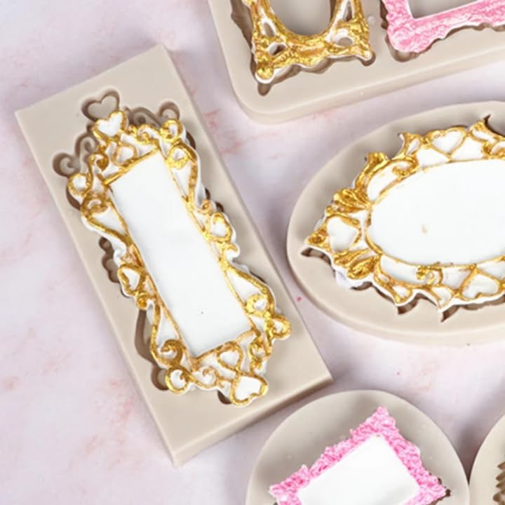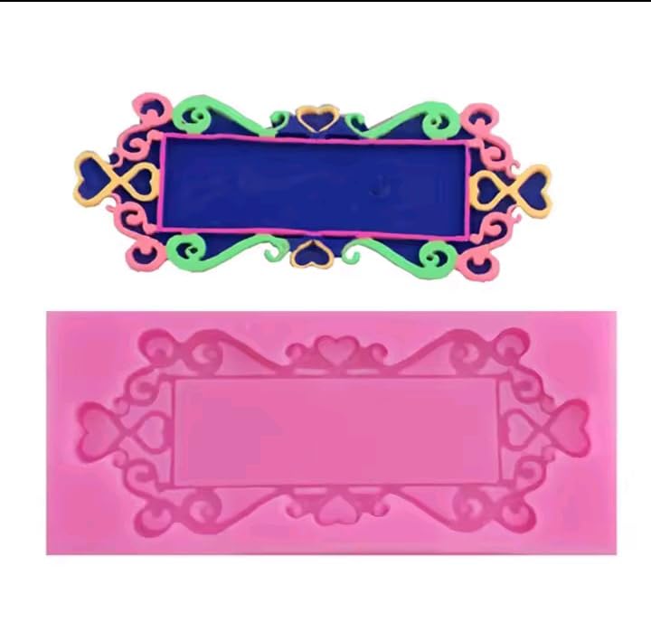 Generic - قالب تشكيل عجينة السكر بشكل إطار برواز مستطيل بشكل قلوب
