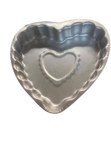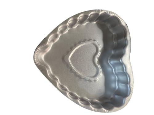 Generic - صينية خبز على شكل قلب، قالب كيك معدني بتصميم قلب مع حواف مموجة، فضي _ حجم كبير لافراد الاسره