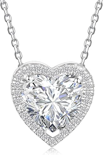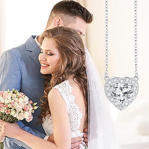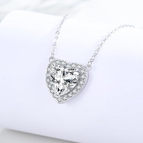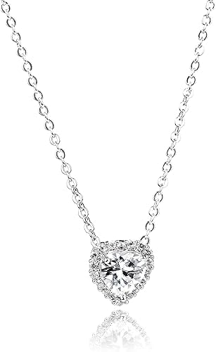 Generic - عقد بقلادة كريستال على شكل قلب، سلسلة من الفضة الاسترلينية، زركونيا مكعب