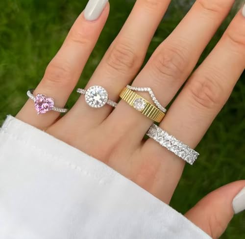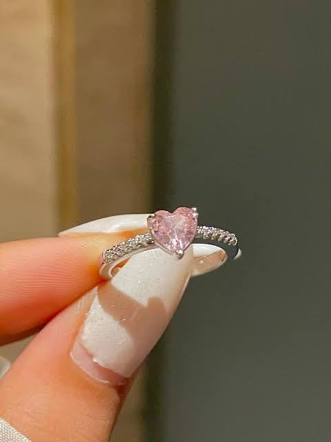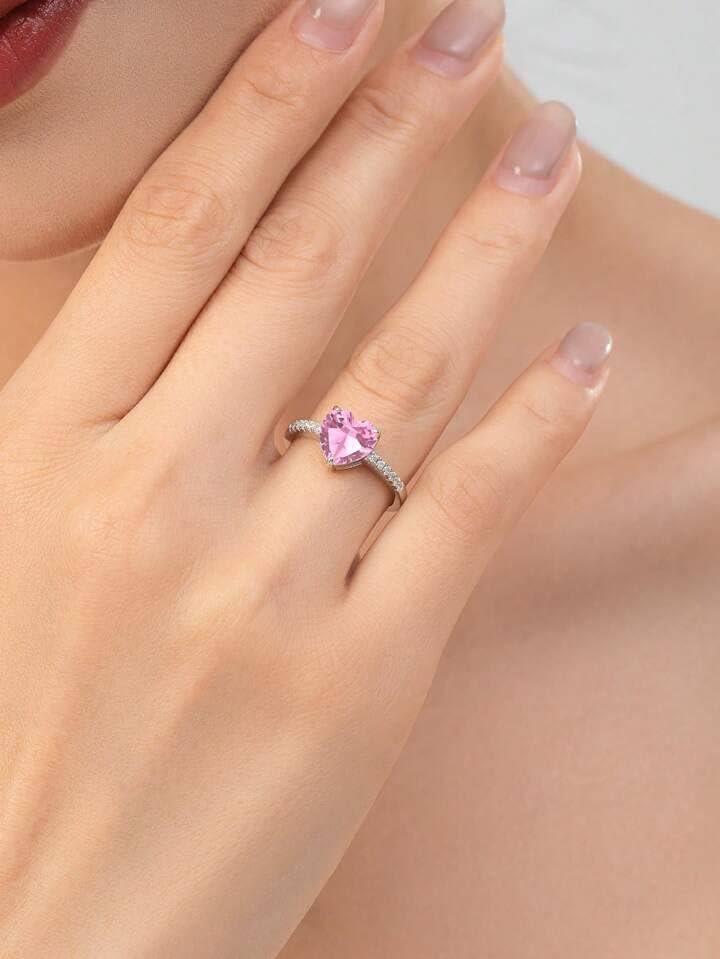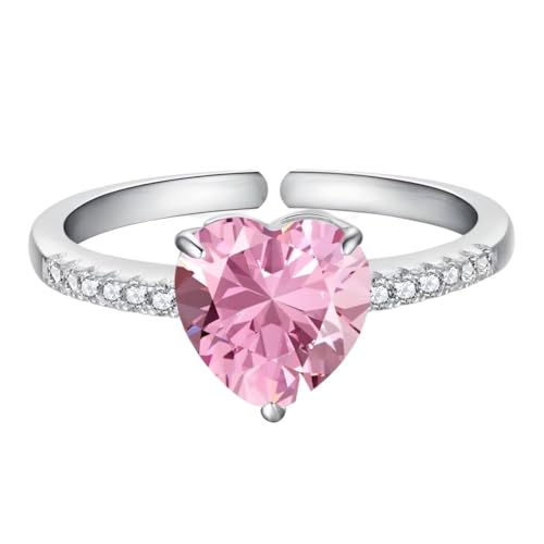 Generic - خاتم كريستال على شكل قلب للنساء لخطوبة قابل للتعديل بلون فضي، مجوهرات هدية رومانسية