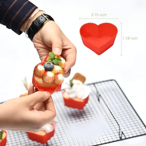 - تحتوي هذه المجموعة على 12 قالب كب كيك سيليكون على شكل قلب، مثالية لعشاق الخبز وصنع حلوى مبهجة لأحبائك. يضيف تصميم القلب الساحر لمسة من المودة إلى الكب كيك الخاص بك، مما يجعلها مثالية للمناسبات الخاصة أو عيد الحب أو ببساطة للتعبير عن اهتمامك من خلال الخبز.