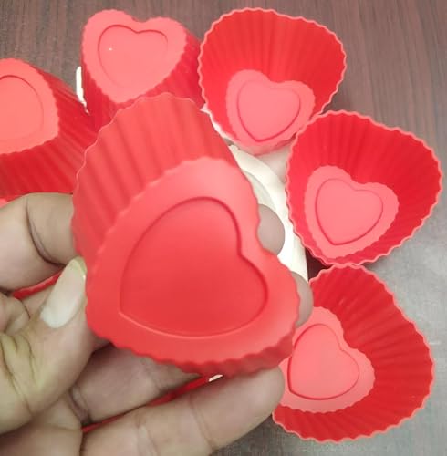Generic - قوالب كب كيك على شكل قلب مجموعة من 12 قالب سيليكون مقاوم للالتصاق لخبز الكب كيك السريع والجيلي والكراميل الكريمي، مناسبة لصواني التيفلون