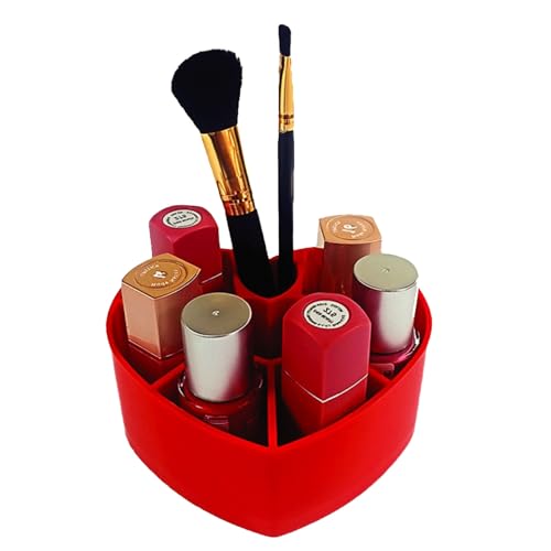 - مساحات التخزين - تحتوي منظمات المكياج بشكل قلب على مساحات تخزين، وفواصل، وأقسام متعددة لتخزين وتنظيم أنواع مختلفة من منتجات المكياج مثل أحمر الشفاه، والفرش، وظلال العيون، وغيرها.