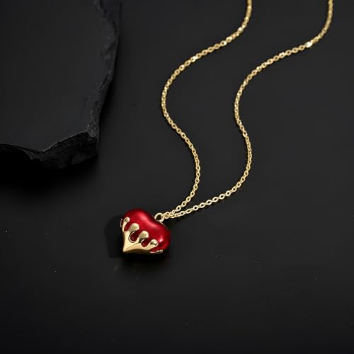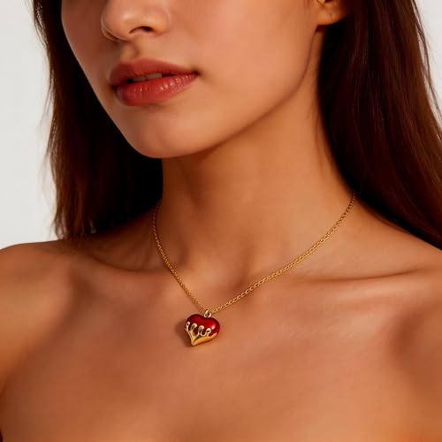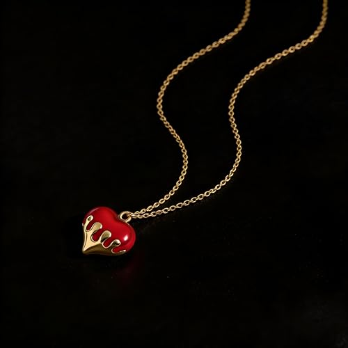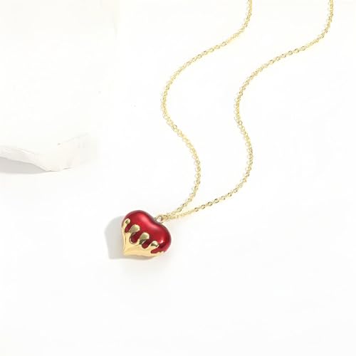 Generic - قلادة حمراء على شكل قلب - قلادة من الستانلس ستيل عالي الجودة، لا تفقد بريقها ومثالية للبشرة الحساسة
