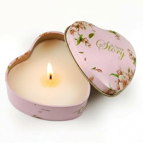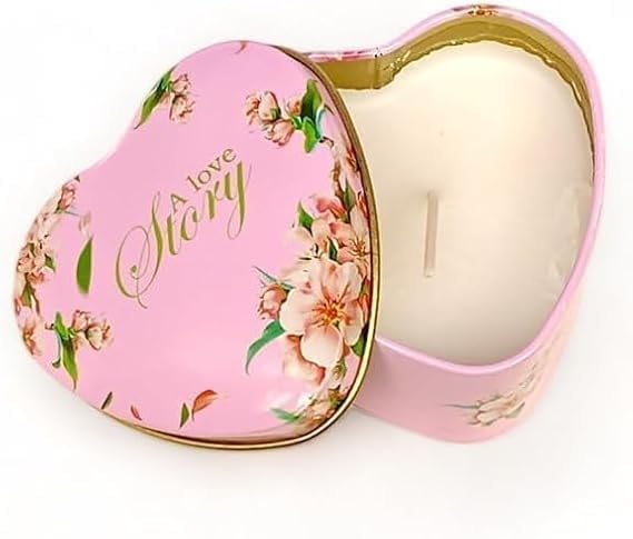 Generic - شمعة معطرة داخل علبة معدنية على شكل قلب بغطاء محكم، شمع عالي الجودة برائحة هادئة، مناسبة للاسترخاء وتزيين المنزل، هدية أنيقة للاستخدام اليومي (1, a love story pink)