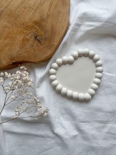 Generic - صينية حلي مزينة بالخرز الأبيض على شكل قلب، 13.5 × 12 سم، منظم مجوهرات مزخرف، 3 قطع
