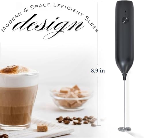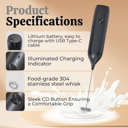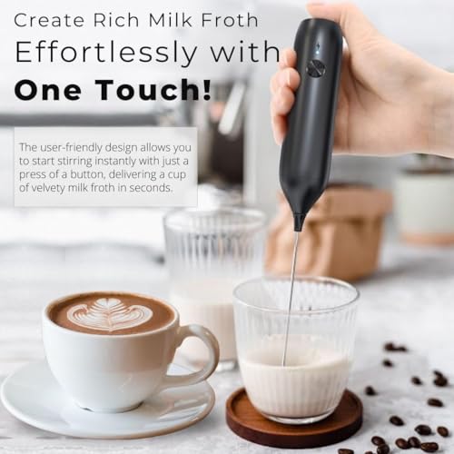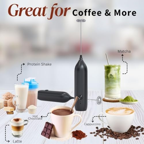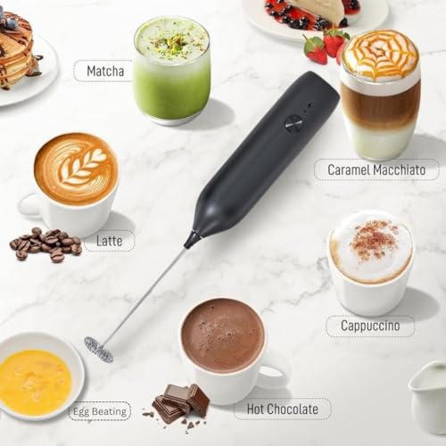 HEARTHLY - صانع رغوة حليب كهربائي محمول باليد، خلاط مشروبات قوي ومضرب محمول، قابل لاعادة الشحن بمنفذ USB نوع C، مثالي للقهوة واللاتيه والكابتشينو والشوكولاتة الساخنة والمزيد (اسود)