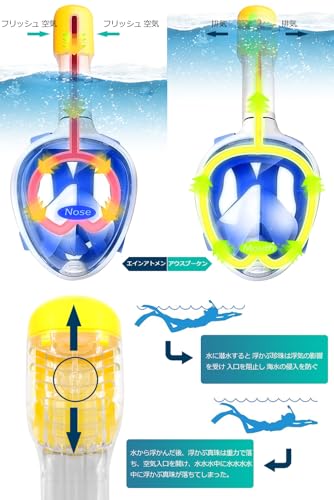 - 💗【لا تتنفس】يعتمد قناع الغطس المحسن هذا على مفهوم تهوية حرة للتنفس، لذلك يغطي قناع الغطس الوجه بالكامل ويغلق الهواء تلقائيًا عند الغوص في الماء. يمكنك التنفس بشكل مريح من فمك أو من خلال أنفك. يمكنك تجربة الشعور الطبيعي بالتنفس عند التواجد على الأرض.