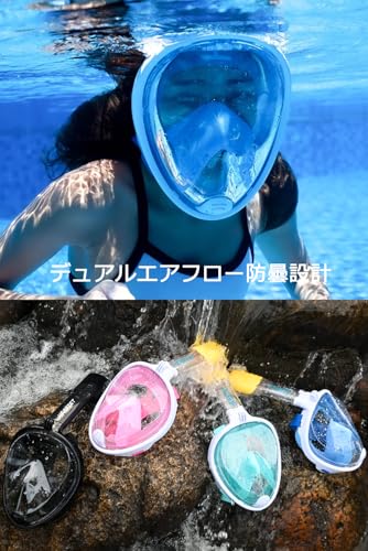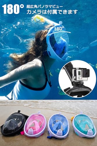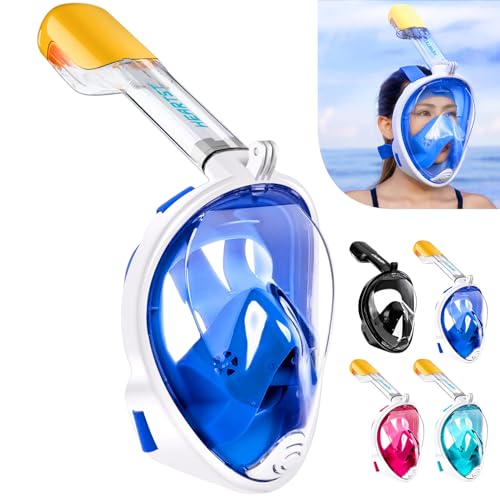 HEARTST - قناع غوص للوقاية من الماء من هارتست، قناع غوص برؤية بانورامية 180 درجة للبحر لكامل الوجه، تصميم مضاد للضباب، قناع غوص جيد التهوية بحرية، معدات الغوص، كاميرا رياضية، للجنسين، للأطفال