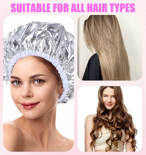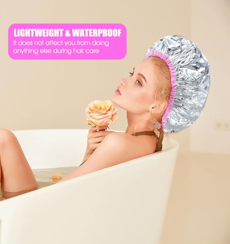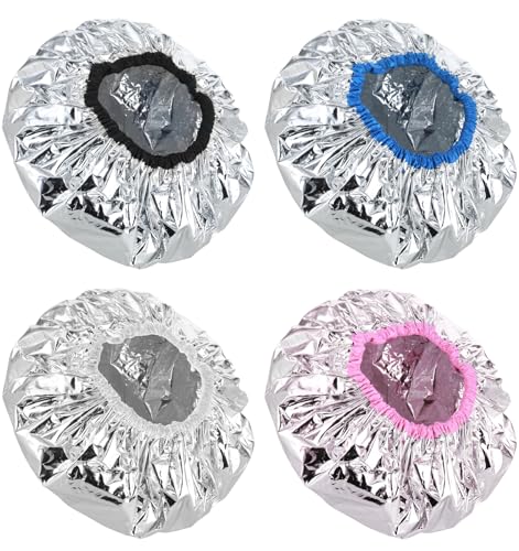 ValueBargain - قبعة حرارية للترطيب العميق، قبعة بخار للشعر، قبعة استحمام لصبغ الشعر الأفريقي الكثيف وجميع أنواع الشعر، ملحقات معالجة بالزيت في المنزل وصالونات التجميل، قابلة لإعادة الاستخدام ومقاومة للماء، 4 قطع
