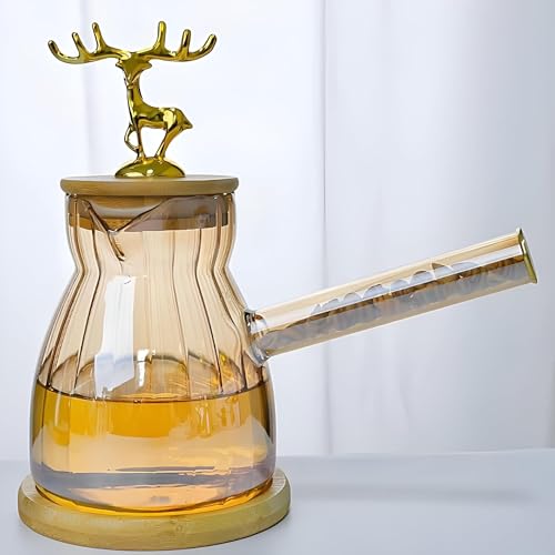 Generic - ابريق حراري - وعاء شفاف من البوروسيليكات بمقبض مريح وغطاء خشبي بطابع الغزال، مثالي للمطابخ الحديثة التي تبحث عن التوازن بين المتانة والأناقة والأناقة العملية