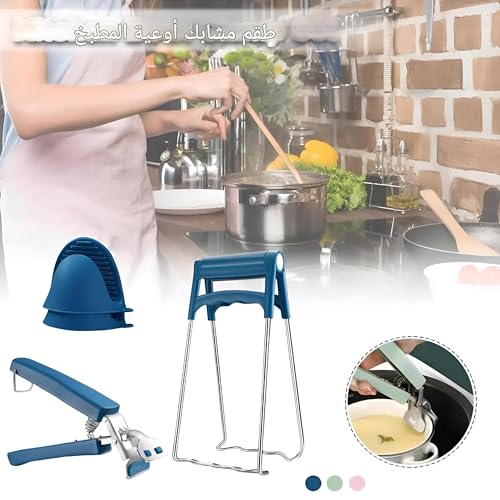 Generic - واقي اليد من الحرارة - مقبض طبق ساخن مع ملقط وقفازات سيليكون للتعامل الآمن مع ادوات الطبخ والاواني والشوايات واكسسوارات المطبخ الاساسية