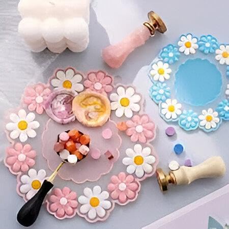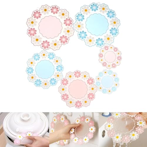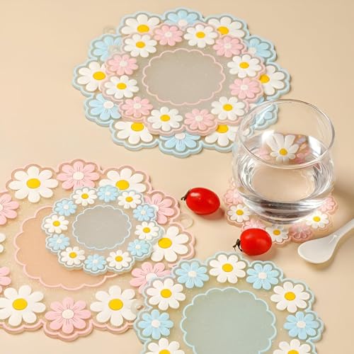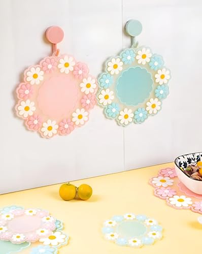 Generic - وسادات حرارية - قواعد اكواب دائرية من السيليكون المتين مصممة كركائز مطبخ بتصميم زهرة الاقحوان، عازلة ومضادة للانزلاق لوضع امن لاواني الطبخ الساخن او اباريق الشاي او الاكواب باللون الزهري والازرق