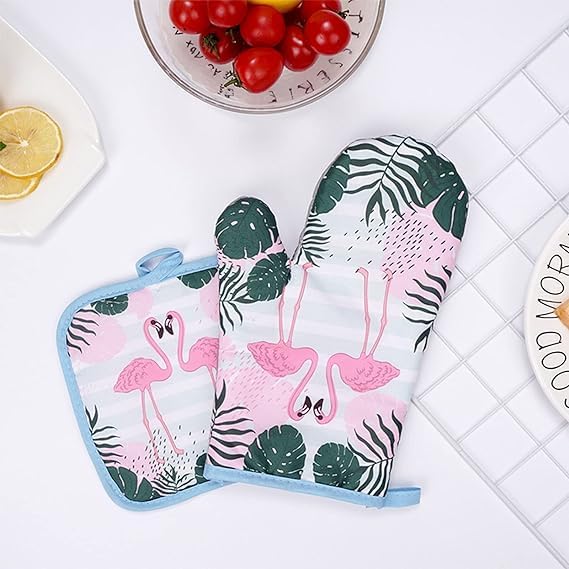 Generic - طقم جوانتي فرن ومساكة أواني من قطن مقاوم للحرارة للطبخ والخبز والشواء طقم قطعتين- متعدد الالوان