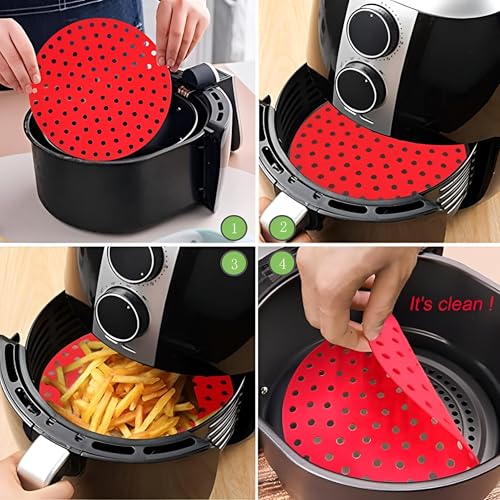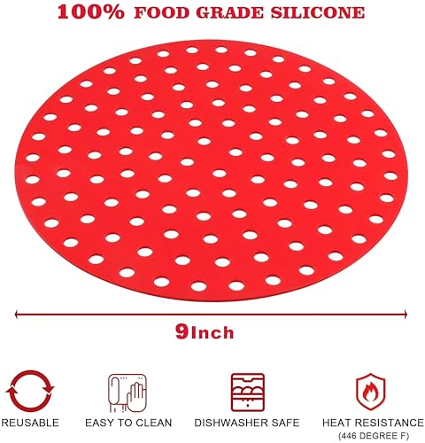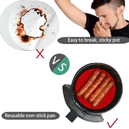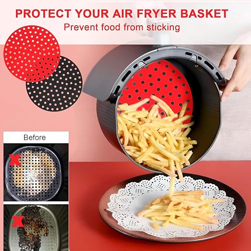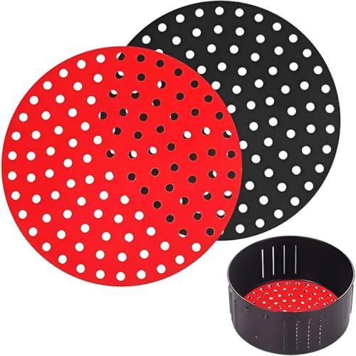 Generic - بطانات مقلاة مقاومة للحرارة - وسادات سيليكون قابلة لاعادة الاستخدام مقاس 8 انش، غير لاصقة وخالية من BPA، عبوة من قطعتين مصممة للاستخدام الآمن والسهل للمقلاة الهوائية