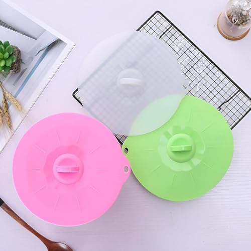 Generic - أغطية أواني مقاومة للحرارة متينة من السيليكون مصممة للحفاظ على الطعام طازجًا مناسبة لتخزين بقايا الطعام ومنع الانسكابات في مطبخك (3 قطع من الألوان المعروضة)