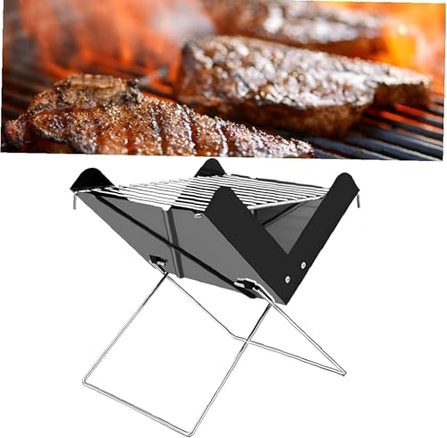 Daga - شواية فحم متينة محمولة بتصميم قابل للطي وسطح طهي شبكي من الكروم للتخييم والشواء في الهواء الطلق، خفيفة الوزن وسهلة التنظيف من معدن مقاوم للحرارة، تصميم كومب
