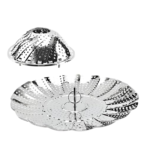 Generic - مبرد بخار ستانلس ستيل مقاوم للحرارة - مصفاة قابلة للطي ومتعددة المقاسات لطهي وجبات صحية وتبخير الخضراوات بلمسة نهائية فضية وتصميم صغير (قطعة 2)