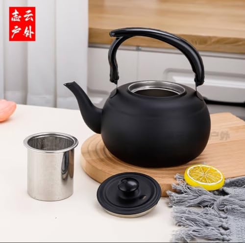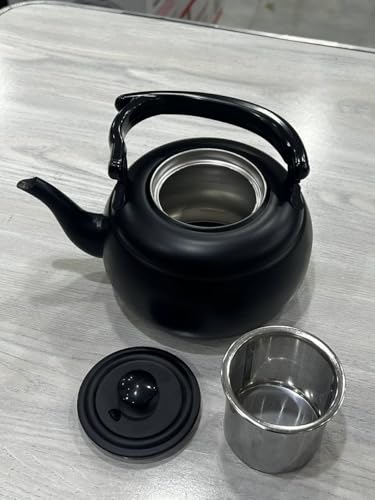 Generic - إبريق شاي مقاوم للحرارة مع مصفاة سعة 1.5 لتر، لون أسود غير لامع
