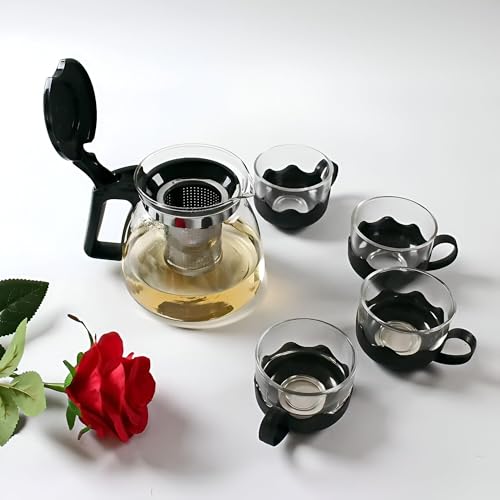- بسعة سخية تبلغ 1000 مل، يأتي إبريق الشاي هذا مع أربعة أكواب متطابقة، كل منها بسعة 150 مل، مما يجعله مثاليًا لمشاركة لحظات الشاي الممتعة مع أحبائك. يجعله عرضه الفاخر مثاليًا للترفيه عن الضيوف أو الاستمتاع بشاي هادئ بعد الظهر.