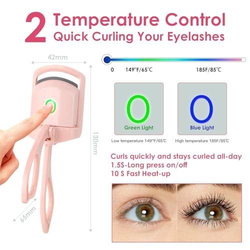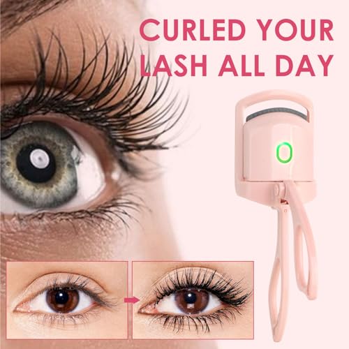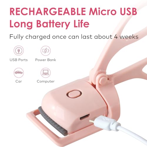 BORNBYME - اداة تجعيد الرموش الحرارية من بورنبيمي، مكواة تجعيد رموش كهربائية سريعة الحرارة مع وضعين للتسخين لمكياج النساء بسرعة وطبيعية لتجعيد الرموش، زهري