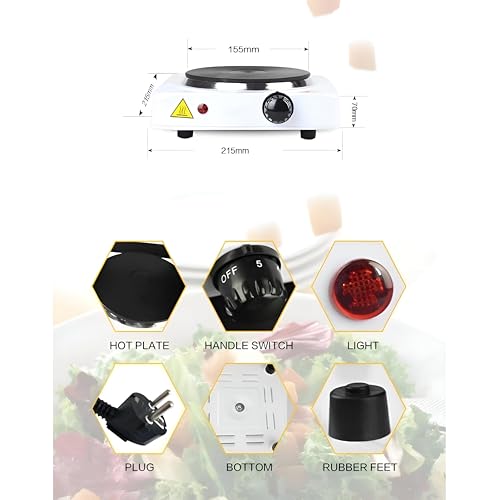 Generic - عنصر التسخين - لوحة كهربائية 1000 واط للطبخ والتدفئة، مثالية للشاي والقهوة والوجبات السريعة، تصميم صغير للمنزل والمكتب والعطلات مع امان كامل (ابيض/اسود)