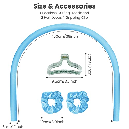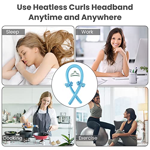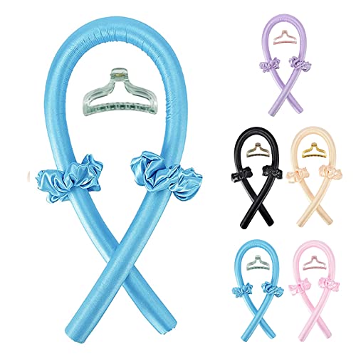AKHTART - شريط رأس لتجعيد الشعر بدون حرارة، أداة تجعيد شعر حريرية مريحة بدون حرارة للاستخدام عند النوم، مجموعة تجعيد الشعر بدون حرارة للشعر الطويل والقصير والمتوسط بدون حرارة مع دبوس شعر وتوك لتصفيفات الشعر