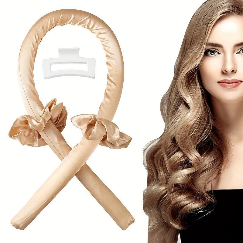 Generic - شريط راس لتمويج الشعر بدون حرارة، اداة تجعيد الشعر من الساتان، لون بيج، بدون تموجات حرارية، اداة تصفيف الشعر طوال الليل