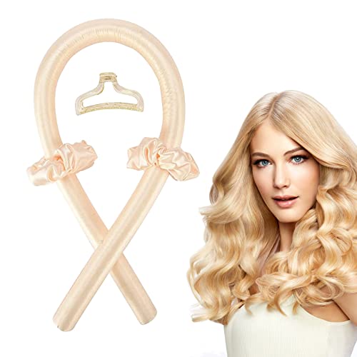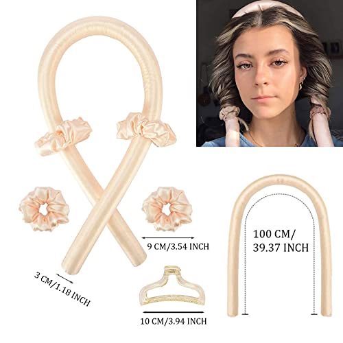 SONGQEE - شريط رأس لتمويج الشعر بدون حرارة، أداة تجعيد الشعر بدون حرارة، أدوات تصفيف الشعر للشعر الطويل والمتوسط، مجموعة لف الشعر بدون حرارة مع ربطات شعر ومشبك شعر، لفافة شعر حريرية (بيج)