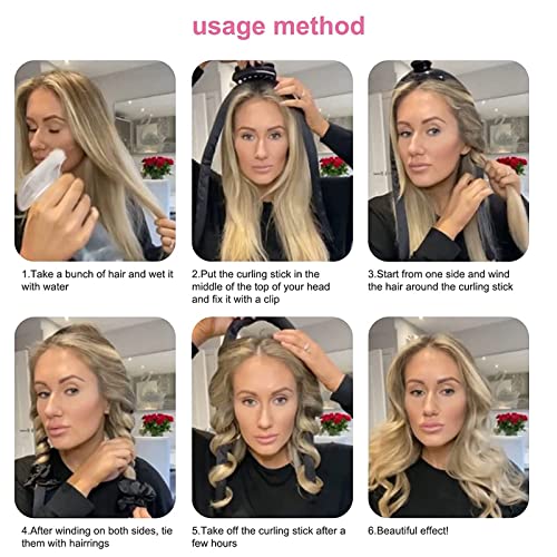 - 【سهولة الاستخدام】قبل الذهاب إلى السرير، استخدمي مشطًا رفيع الذيل لفصل مجموعة صغيرة من الشعر الطويل قليلاً، ولفيه على عصي التجعيد، وثبته بشريط أستك دون الحاجة إلى استخدام حرارة. ستحصلين على شعر مجعد جميل في الصباح التالي، ولن يسبب طوق الرأس في أي إزعاج عند النوم.