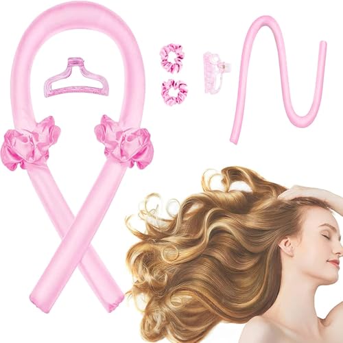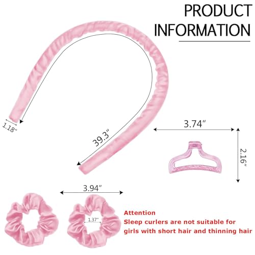 Generic - أداة تجعيد الشعر بدون حرارة للشعر الطويل، شريط رأس مع إمكانية النوم به لتصفيف الشعر الحريري، ناعم ومريح (وردي، مقاس متوسط M)