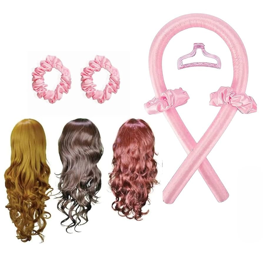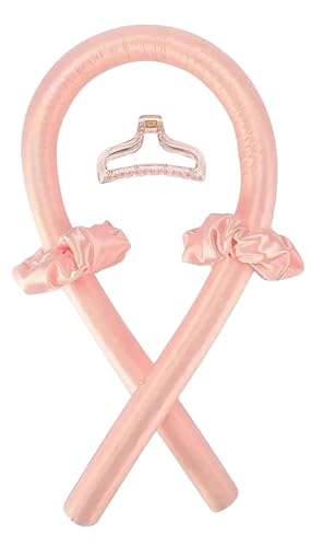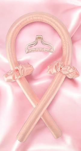 Generic - شريط تمويج الشعر الساتان الوردي بدون حرارة، مع مشابك وربطة شعر، للشعر الطويل، تمويج طبيعي أثناء النوم