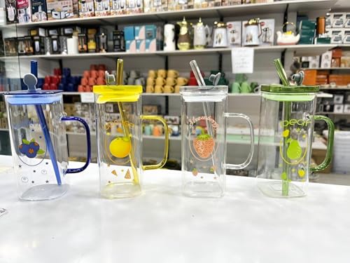 Generic - كوب مقاوم للحرارة مربع متعدد الألوان من البوروسيليكات بغطاء اكريليك محكم الغلق وشفاطة قابلة لإعادة الاستخدام، للمشروبات الساخنة أو الباردة مع وضوح ممتاز ونمط جمالي عصري، 400 ملليلتر