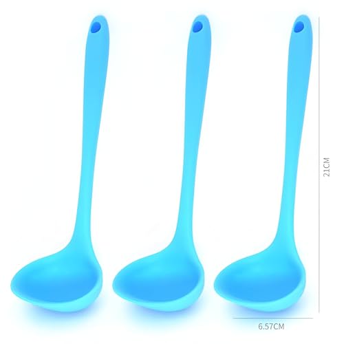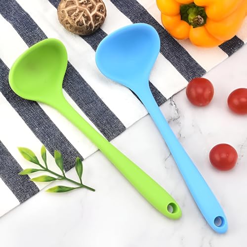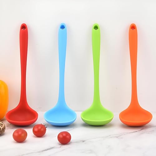 Generic - مغرفة شوربة سيليكون كلاسيكية مقاومة للحرارة للطبخ والتقليب وتقديم الشوربات واليخنات والصلصات وغيرها، مقاس 21 سم (6 قطع، من الألوان المعروضة)