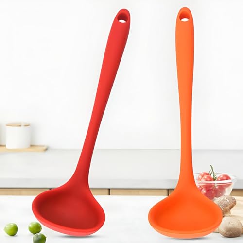- مغرفة الحساء المصنوعة من السيليكون المقاومة للحرارة مقاس 8.25 انش مثالية للتحريك والطهي وتقديم الحساء واليخنات والصلصات وأكثر من ذلك. يجمع بين التنوع والعملية، مما يضمن قدرته على التعامل مع مجموعة واسعة من مهام المطبخ.